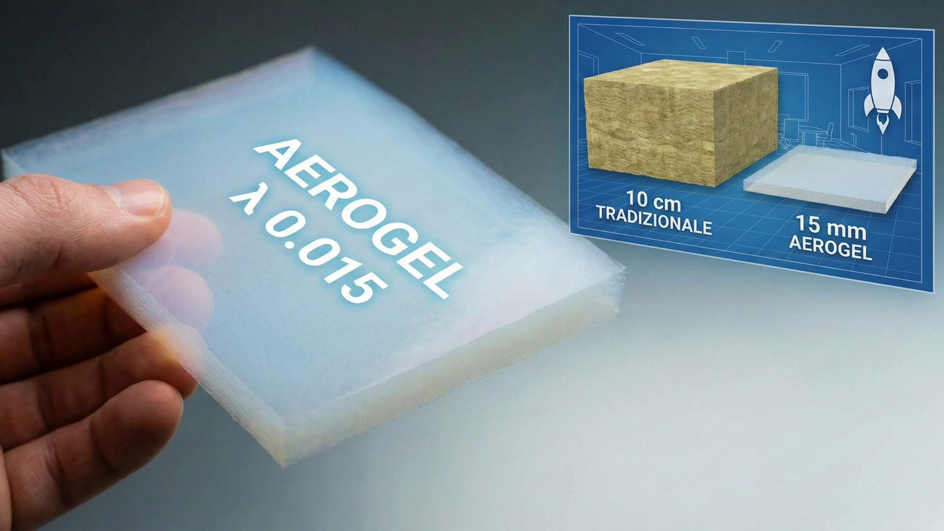La tecnologia derivata dalla NASA per chi non può permettersi spessori ingombranti. Con una conducibilità molto bassa (λ 0.015), isola come 10 cm di materiale tradizionale in soli 10–15 mm.